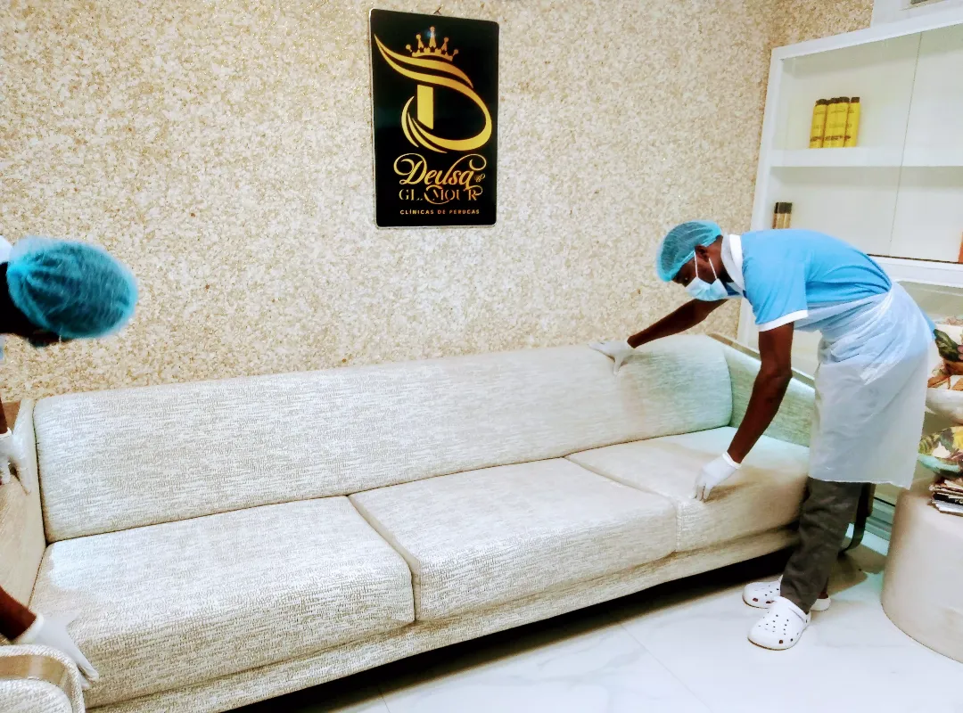 Na nossa lavagem não molhamos o sofá. Utilizamos o método de pulverização superficial ou a lavagem a vapor para garantir a secagem breve do sofá.